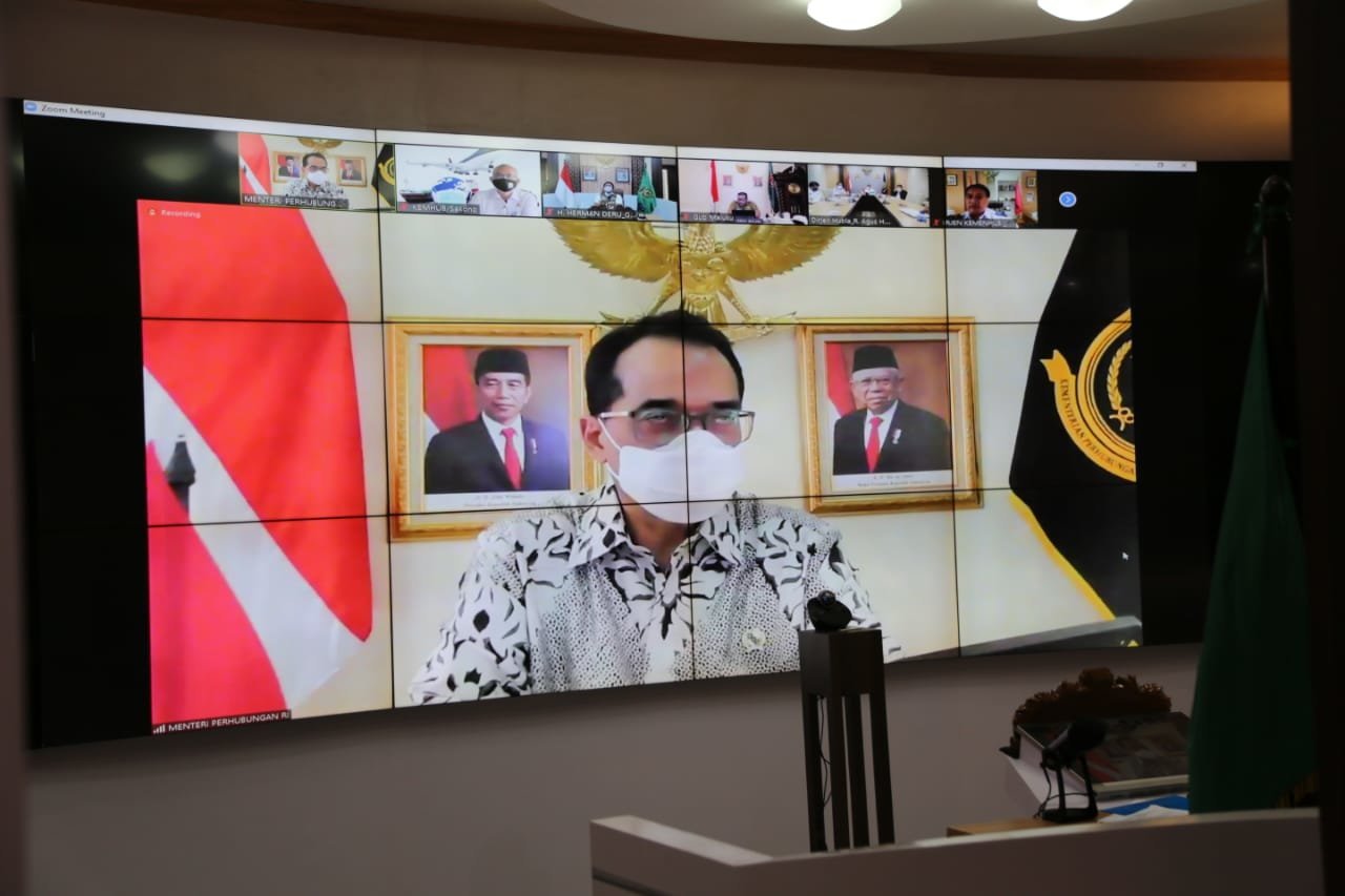 PALEMBANG, KRsumsel.com – Gubernur Sumsel H Herman Deru bersama Menteri Perhubungan (Menhub) RI, Budi Karya Sumadi menggelar rapat lanjutan terkait koordinasi dua pembangunan diantaranya Pelabuhan New Palembang di Tanjung Carat dan Pelabuhan New Ambon secara virtual bertempat di Command Center Kantor Gubernur Sumsel, Senin (5/7).