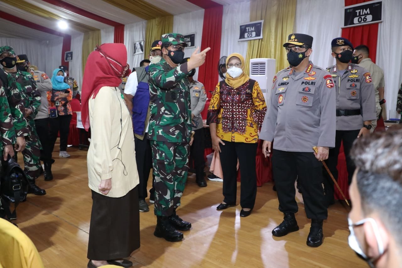 Jakarta, KRsumsel.com – Panglima TNI Marsekal TNI Hadi Tjahjanto, S.I.P. bersama Kapolri Jenderal Polisi Drs. Listyo Sigit Prabowo, M.Si., dan Kepala BNPB Letjen TNI Ganip Warsito, S.E., M.M. meninjau langsung pelaksanaan serbuan vaksinasi bagi warga masyarakat, di tiga lokasi, Jakarta Selatan, Selasa (6/7/2021).