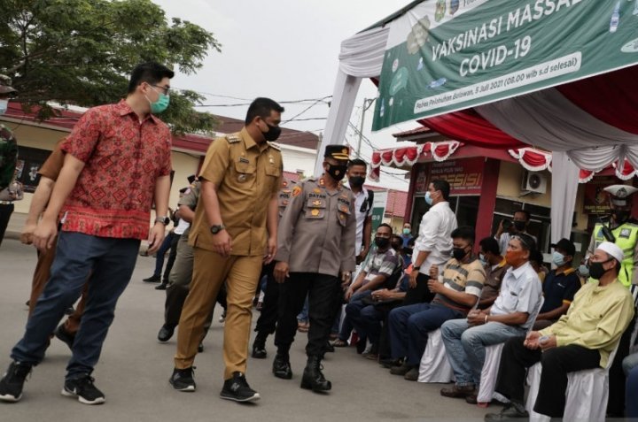 “Saat ini masyarakat yang divaksin hampir 49 persen, dan terus bertambah. Kami menggenjot program ini, agar semua warga divaksinasi COVID-19,” ujar Wali Kota Medan Bobby Nasution ketika meninjau vaksinasi massal, di Polresta Pelabuhan Belawan, Medan, Senin.