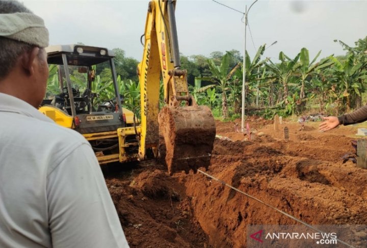 Menurut Estiningsih, alat berat “backhoe loader” membantu pembukaan lahan, meratakan tanah, dan membantu lubang awal. “Lubang itu kemudian dirapihkan oleh penggali makam secara manual,” katanya.