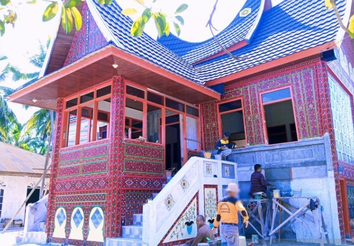 “Kalau pengerjaan rumah gadang pakai kayu lebih lama karena kayu harus dirapikan dulu setelah itu diukir dan dicat. Kalau beton setelah dipasang bisa langsung diukir,” ucapnya.