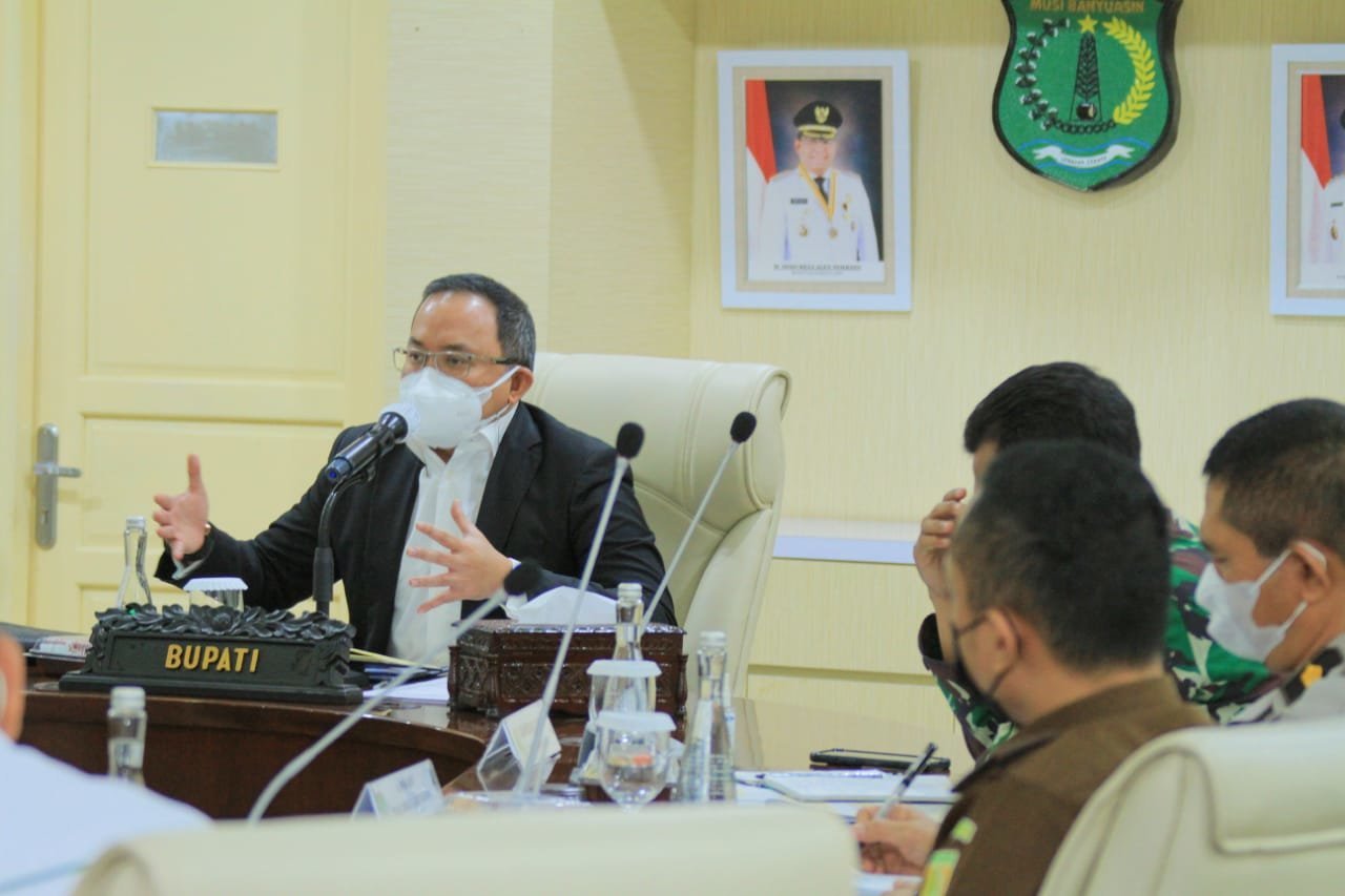 Rapat tersebut dipimpin langsung oleh Bupati Muba Dr H Dodi Reza Alex Noerdin Lic Econ MBA, yang diikuti FKPD dan kepala perangkat daerah Muba, di Ruang Rapat Serasan Sekate Sekretariat Daerah Muba, Senin (12/7/2021).