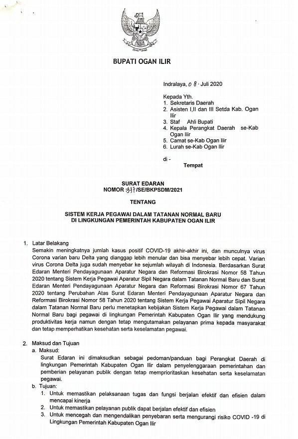 tentang sistem kerja pegawai dalam tatanan normal baru di lingkungan Pemerintah Kabupaten Oi.