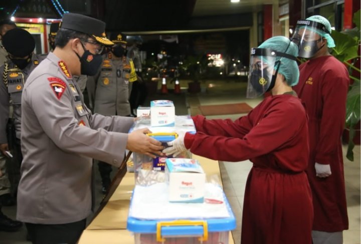 Jakarta, KRsumsel.com – Kapolri Jenderal Pol Listyo Sigit Prabowo melanjutkan kunjungan kerjanya dengan memberikan bantuan kepada tenaga kesehatan di Rumah Sakit Polri Seokanto, Kramatjati, Jakarta Timur, Sabtu malam.