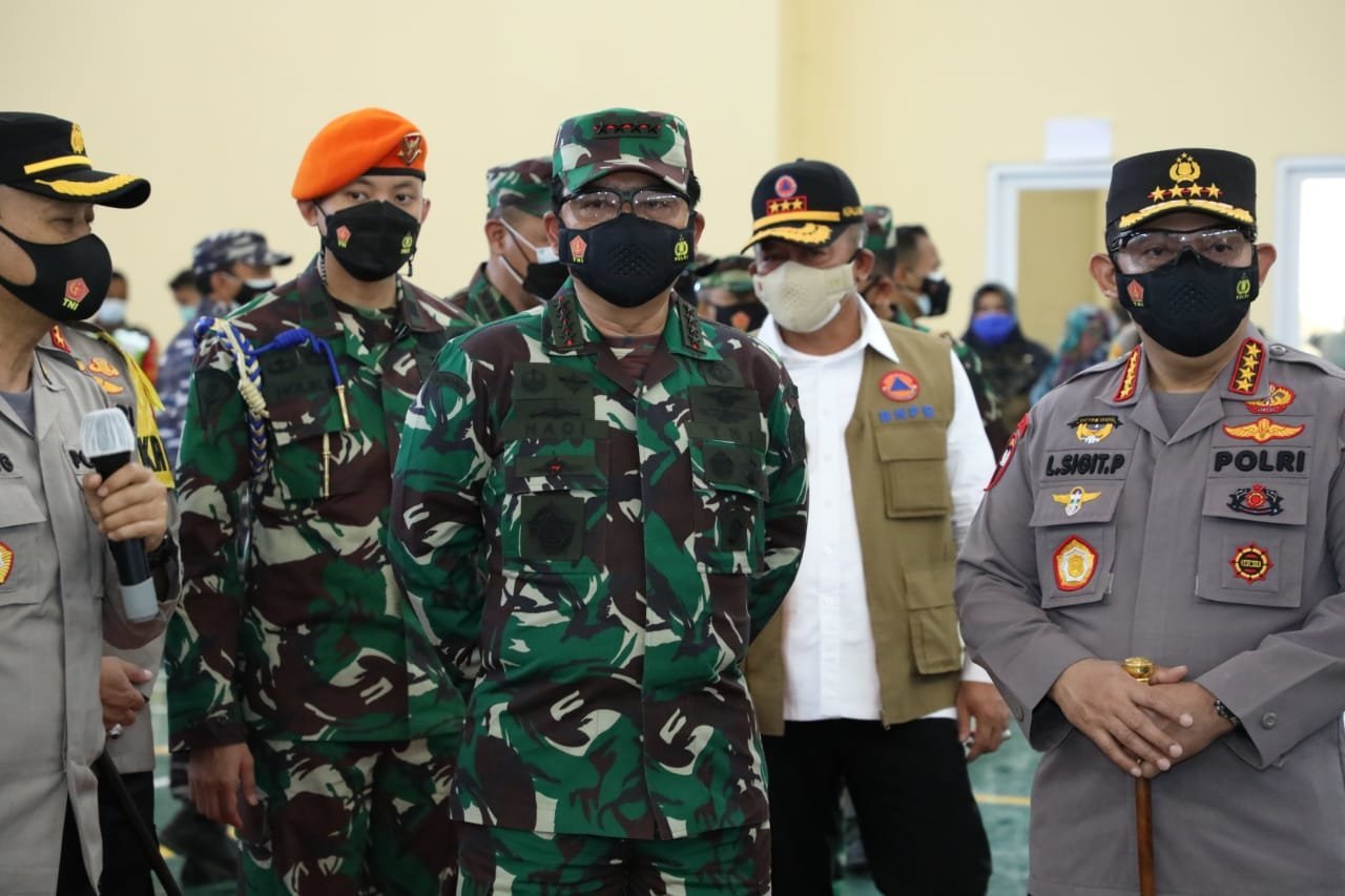 Di sisi lain Panglima TNI mengingatkan kembali untuk sama-sama menegakkan disiplin protokol kesehatan yaitu dengan menggunakan masker. “95% kita akan terlindung dari terpaparnya Covid-19, apabila kita menggunakan masker,” pesannya.