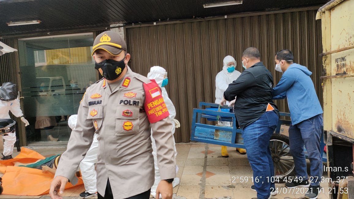 “Jenazah langsung di evakuasi dengan menggunakan mobil ambulans Dinkes Kota Palembang dibantu tim gugus tugas covid 19 dan dikawal patroli Polsek IT I untuk dibawa ke RS Bhayangkara untuk diperiksa lebih lanjut,” ujar Ginanjar, Sabtu (24/7/2021).