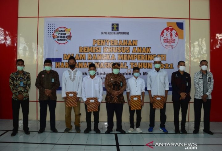 Makassar, KRsumsel.com – Kementerian Hukum dan Hak Asasi Manusia (Kemenkumham) RI memberikan remisi kepada empat anak didik pemasyarakatan (andikpas) yang berada di Lembaga Pemasyarakatan (Lapas) Kelas II A Watampone, Kabupaten Bone, Provinsi Sulawesi Selatan sebagai apresiasi dalam rangkaian peringatan Hari Anak Nasional (HAN) 2021.