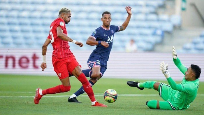 Pertemuan Sevilla vs PSG terjadi di Estadio Algarve, Almancil, Portugal, pada Rabu (28/7/2021) dini hari WIB. Dipimpin oleh wasit João Malheiro Pinto, Sevilla unggul lebih dulu di menit ke-40 lewat penalti Ivan Rakitic.