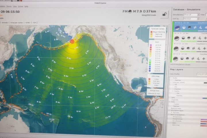 Menurut BMKG, berdasarkan hasil pemodelan, tsunami dengan tinggi tidak signifikan, kurang dari lima cm, akan tiba di wilayah Indonesia, tepatnya di utara Papua, pada 30 Juli 2021 pukul 00.10 WIB.