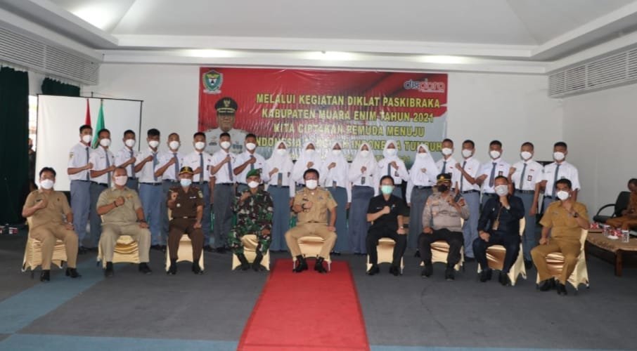 MUARA ENIM, KRSumsel – Bupati Muara Enim H. Nasrun Umar (HNU) bersama Ketua DPRD kabupaten Muara Enim Liono Basuki pada Senin siang (2/08/2021) membuka sekaligus meresmikan Pendidikan dan Pelatihan (Diklat) Pasukan Pengibar Bendera Pusaka (Paskibraka) Tingkat Kabupaten Muara Enim Tahun 2021.