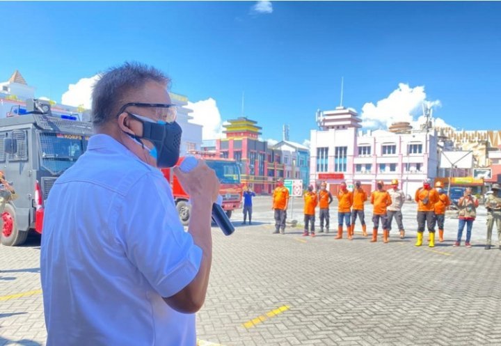 “Pemprov bekerjasama dengan Satgas Percepatan Penanganan COVID-19 Sulut menyelenggarakan kegiatan ini guna memutus mata rantai penyebaran COVID-19 di Bumi Nyiur Melambai,” ujar Gubernur Olly Dondokambey saat melepas tim penyemprotan desinfektan di Manado, Sabtu (31/7).