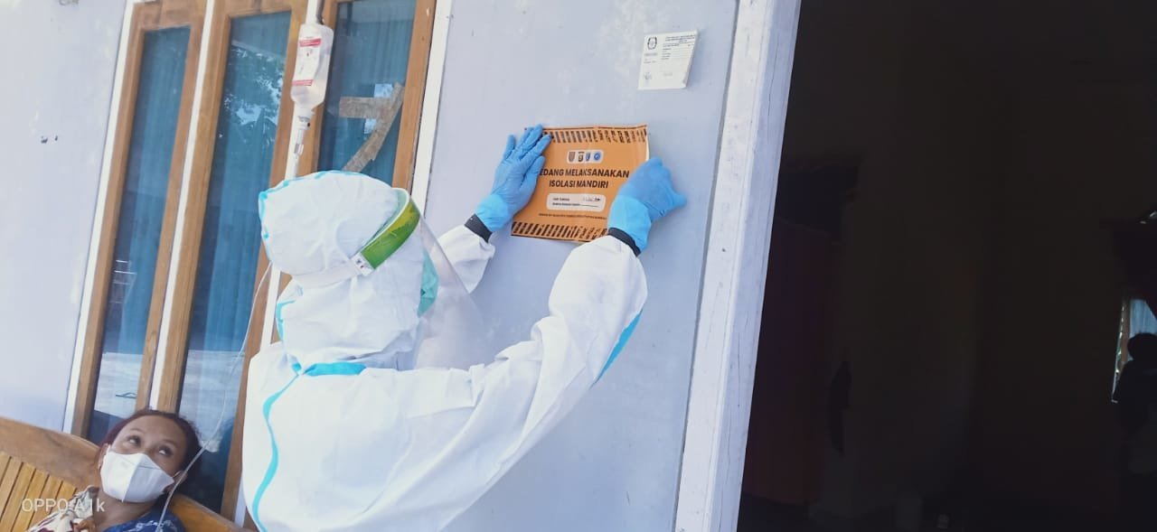 “Dibantu Babinsa dan Babinkamtibmas kita pantau pasien isoman setiap rumah ditempel stiker sedang menjalani isoman agar terdata” jelas Iwan.