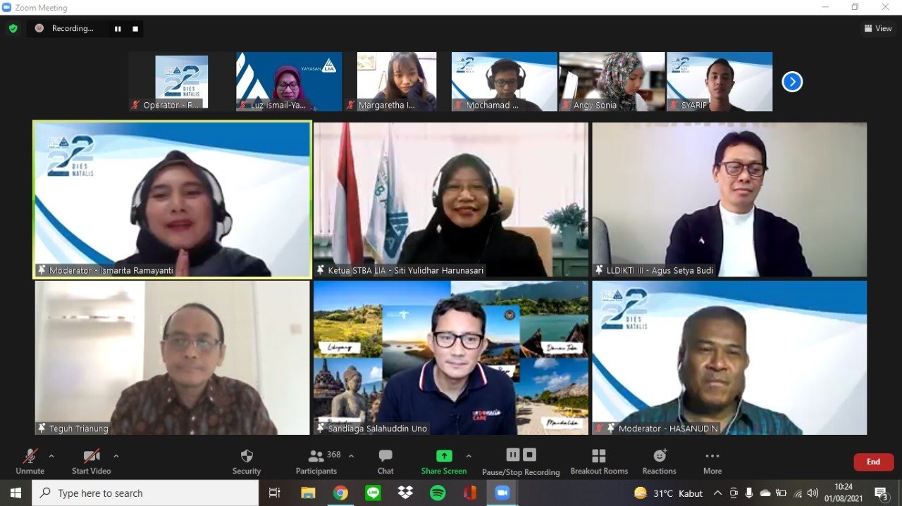Hal tersebut disampaikan Ketua STBA LIA Jakarta, Siti Yulidhar dalam Seminar Nasional Sekolah Tinggi Bahasa Asing (STBA) LIA Jakarta bertajuk ‘Pentingnya Bahasa Asing di Dunia Pariwisata dan Ekonomi Kreatif yang digelar secara virtual pada Minggu (1/8/2021).