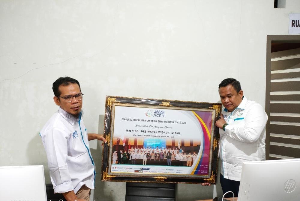 Dalam pengantar pemberian penghargaan itu, Ketua Umum JMSI Teguh Santosa, mengucapkan selamat menempati pos baru kepada Kapolda Aceh Irjen Pol Wahyu Widada, sebagai As SDM Kapolri.