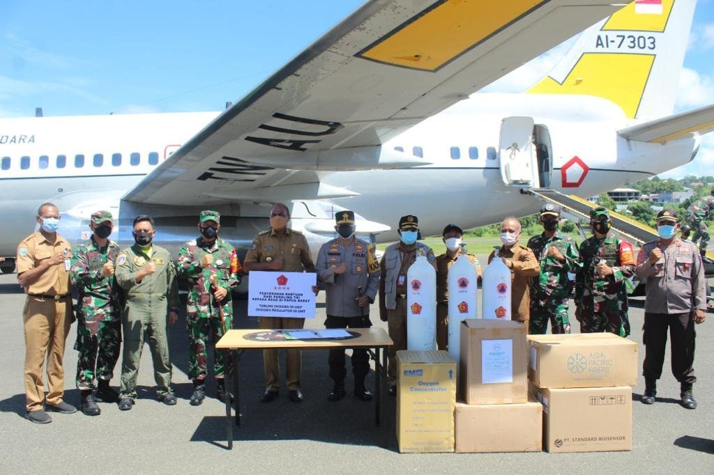 Bantuan tersebut berupa 50 Tabung Oksigen, 50 Oksigen konsentrator, 150.000 masker medis, 1.000 APD, 1000 sarung tangan medis, 20.000 Rapid Ag dan 3 box Regulator O2 yang diangkut menggunakan pesawat Boeing 737 AI-7304 TNI Angkatan Udara.