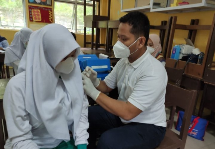 Sementara untuk pelajar, dosis pertama telah diterima 36.016 orang atau 30,56 persen dan 153 orang di antaranya telah menerima dua dosis atau 0,13 persen.