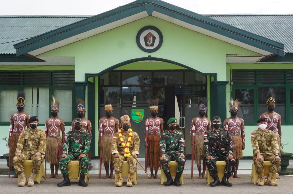Saat kunjung kerja di Detasemen Zeni Tempur (Denzipur) 11/MA, Komandan PMPP TNI beserta rombongan menerima jajar kehormatan dan disambut dengan tarian adat.