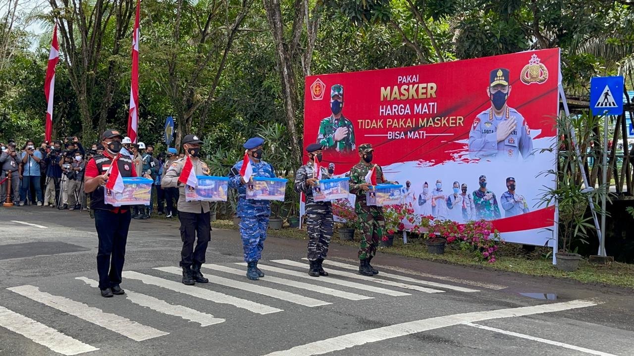 Dalam kegiatan ini juga Panglima TNI dan Kapolri menyerahkan secara simbolis paket Bansos yang total berjumlah 1.120 paket yang akan diantar oleh Babinsa, Babinpotmar, Babinpotdirga dan Bhabinkamtibmas kepada masyarakat yang terdampak pandemi Covid-19.(****)