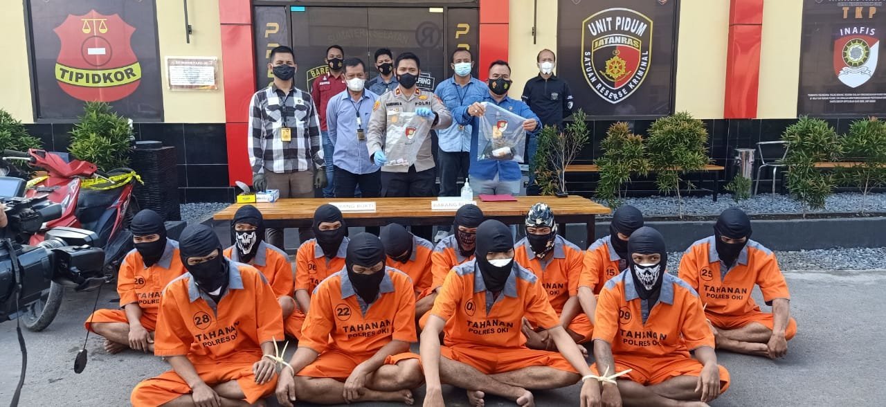 Wakapolres OKI, Kompol Handoko Sanjaya, dampingi Kasat Reskrim AKP Sapta Eka Yanto MSi mengatakan, mereka yang sudah ditetapkan sebagai tersangka yakni Hasanudin, Ipan,Abas,Angga, Solihin,Irpan, Hermansyah, Ahmad Yani, Robinson, Rendika,Dedi Apriyanto dan Andri,” Kami masih terus melakukan pemeriksaan,”terangnya setelah rilis Selasa (10/8).