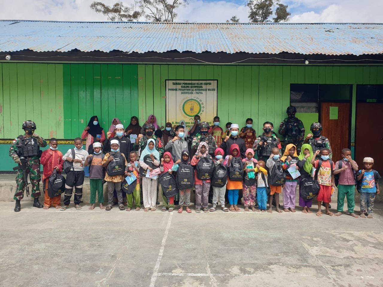 Kegiatan yang digelar pada hari Rabu (11/08/2021) dan bertempat di Yayasan Pondok Pesantren Al-Istiqomah, Distrik Walesi, Kab. Jayawijaya ini dipimpin oleh Komandan Kompi Garuda Satgas Pamrahwan Yonif RK 751/VJS Lettu Inf Gerrydion Oscar Aritonang.