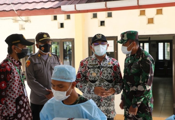 Bupati Kulon Progo Sutedjo dan jajarannya meninjau pelaksanaan vaksinasi di Kecamatan Pengasih dan Wates. Sutedjo juga mengimbau kepada warga masyarakat, walaupun sudah vaksin tetap waspada dan taat terhadap protokol kesehatan secara ketat.(Anjas)