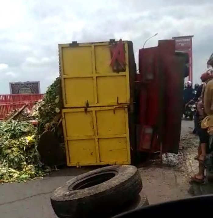 “Kami mengangkut tumpukan sampah Pasar Induk Jakabaring dan wilayah seberang ulu hendak menuju ke Tempat Pembuangan Akhir (TPA) Sukawinatan Palembang. Ketika melintas di Atas Ampera, tiba-tiba truk mengalami kerusakan, dimana aspanjang roda mobil patah, membuat truk sulit dikendalikan sehingga mobil terguling,” ungkapnya.
