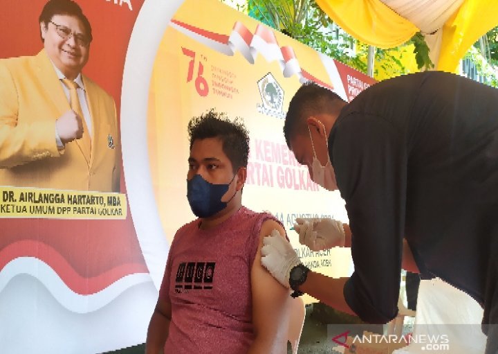 “Kita laksanakan vaksinasi dalam rangka HUT kemerdekaan, serta bentuk partisipasi aktif Partai Golkar dan kadernya dalam menangani COVID-19,” kata Wakil Ketua DPD I Golkar Aceh Sabri Badruddin, di Banda Aceh, Sabtu.
