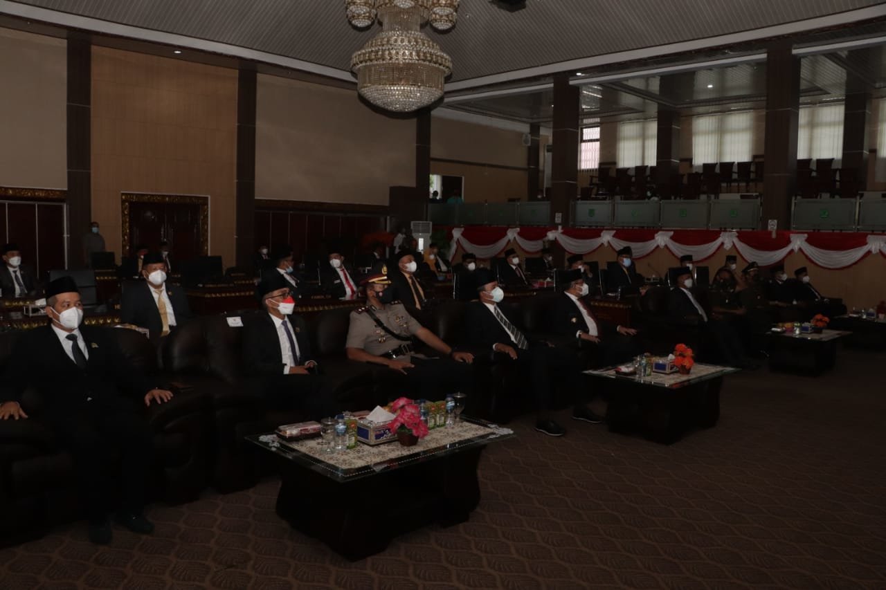 MUBA, KRSUMSEL.com – Bupati Musi Banyuasin Dr H Dodi Reza Alex Noerdin Lic Econ MBA hadir dalam sidang Paripurna Istimewa mendengarkan Pidato Kemerdekaan oleh Presiden Republik Indonesia dalam rangka HUT Kemerdekaan RI ke-76 secara virtual, di Ruang Rapat Paripurna DPRD Muba, Senin (16/8/2021).