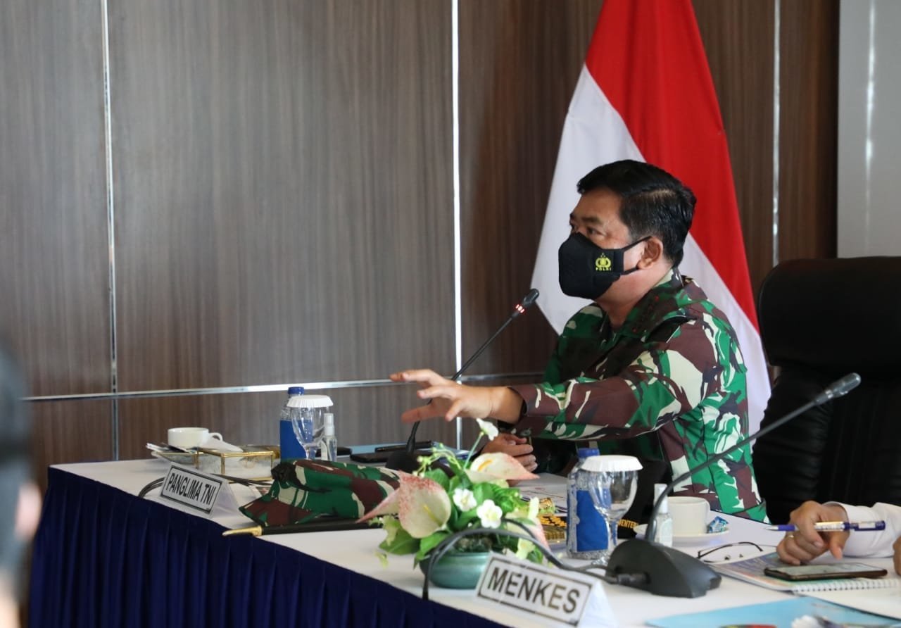 Selanjutnya Panglima TNI menyampaikan hal-hal yang menjadi penekanan Presiden RI Joko Widodo, diantaranya menurunkan indeks mobilitas masyarakat, karena inilah potensi penularan Covid-19 dan peningkatan 3T yaitu Testing, Tracing dan Treatment.