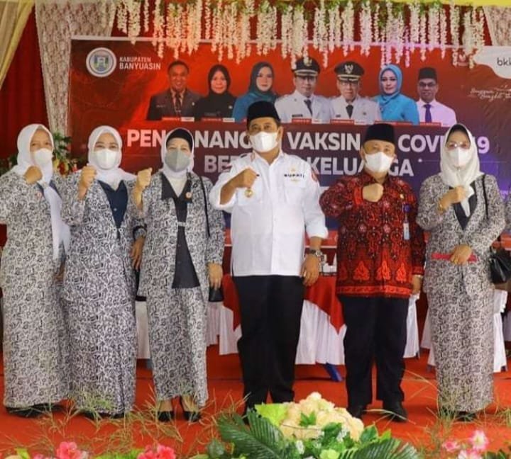 Untuk itu, Pemerintah Kabupaten Banyuasin melalui Dinas Pengendalian Penduduk, Keluarga Berencana, Pemberdayaan Perempuan dan Perlindungan Anak Kabupaten Banyuasin dan Dinas Kesehatan Kabupaten Banyuasin mencanangkan vaksinasi Covid 19 berbasis keluarga.