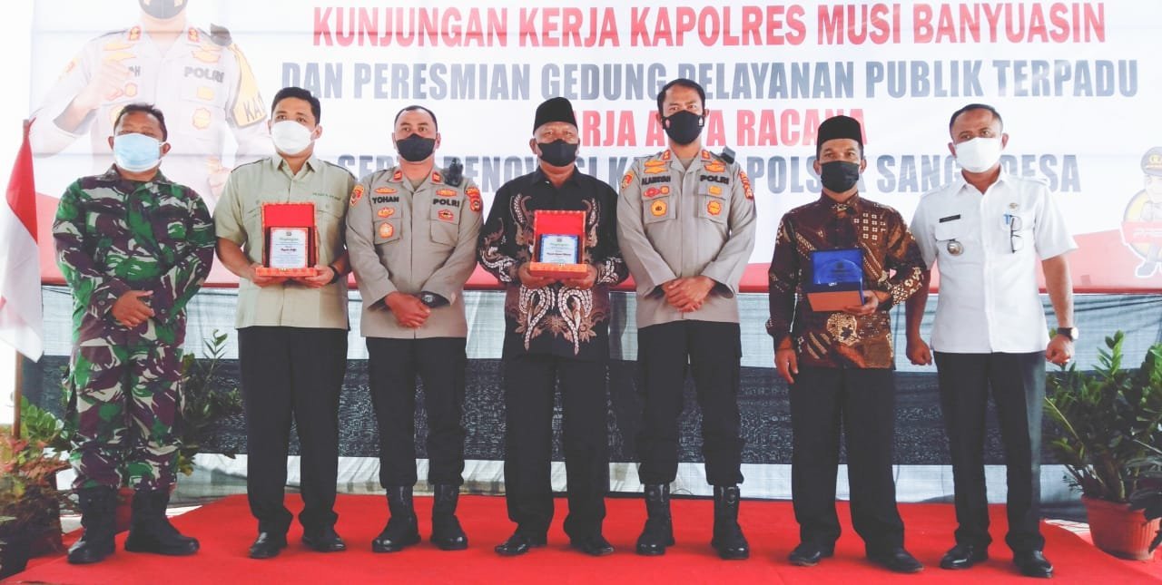 MUBA, KRSUMSEL.com – Kunjungan Kerja ke Mapolsek Sanga Desa, Kapolres Musi Banyuasin (Muba) AKBP Alamsyah Pelupessy, SH, SIK, MSI secara lansung meresmikan Gedung Sarja Arya Racana dan penyerahan Bantuan Sosial (Bansos), Selasa (14/09/21).