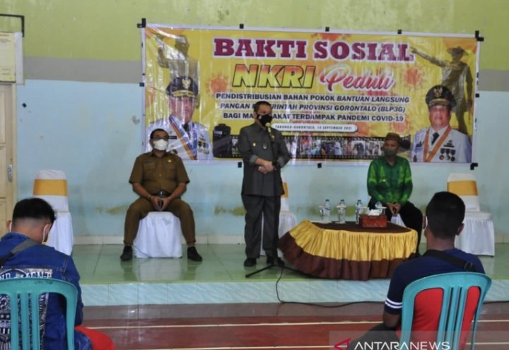 Gorontalo, KRsumsel.con – Pemerintah Provinsi Gorontalo menggelar bakti sosial NKRI Peduli, untuk mendistribusikan bantuan langsung pangan kepada Keluarga Penerima Manfaat (KPM) yang terdampak di Kecamatan Tabongo Kabupaten Gorontalo, Selasa (14/9).