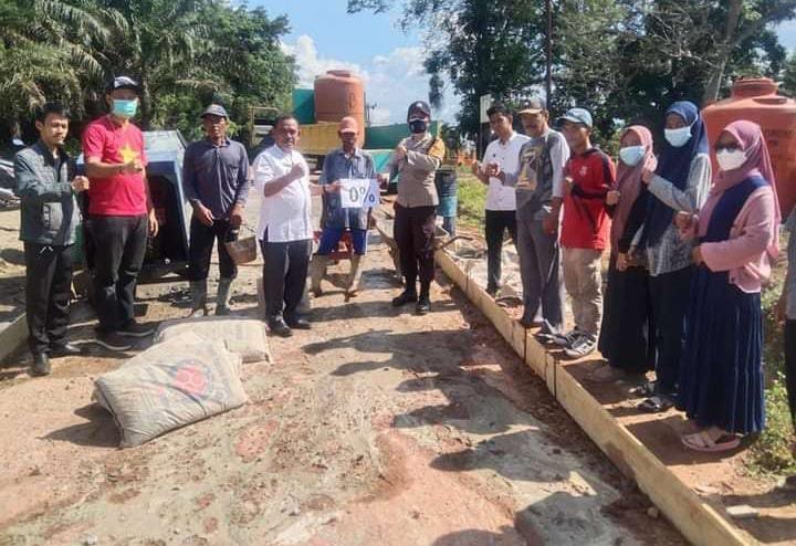 Camat Suak Tapeh Sashadiman Ralibi, S.Ag., M.Si usai melakukan peletakan batu pertama awal dimulainya progres pengerjaan pembangunan jalan tersebut
