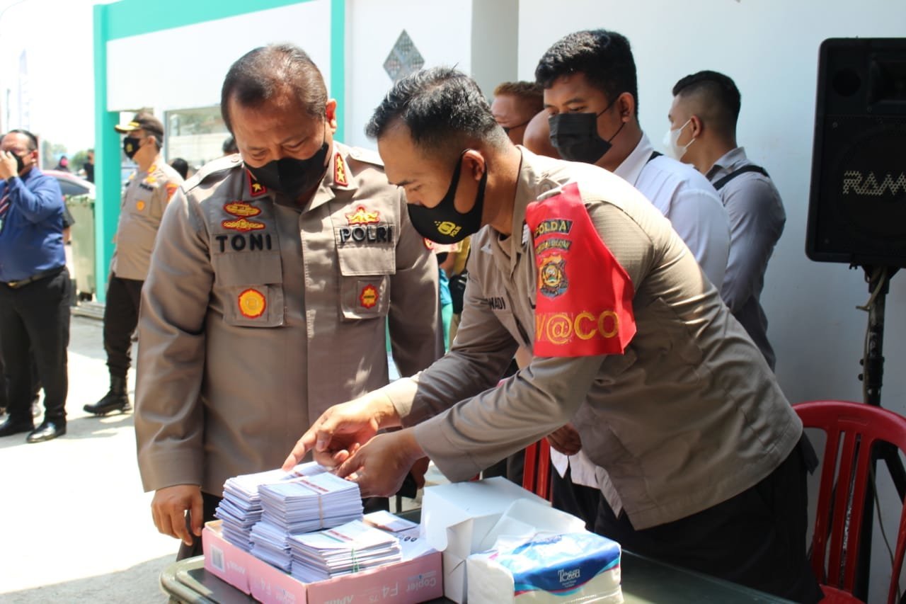 PALEMBANG, KRsumsel.com –Kapolda Sumsel, Irjen Pol Drs Toni Harmanto MH hadiri kegiatan Serbuan Vaksinasi dan Bakti Sosial Nusantara AKABRI 98 NAWAHASTA di Kelurahan Talang Jambe, Kecamatan Sukarami Palembang, Selasa (21/9).