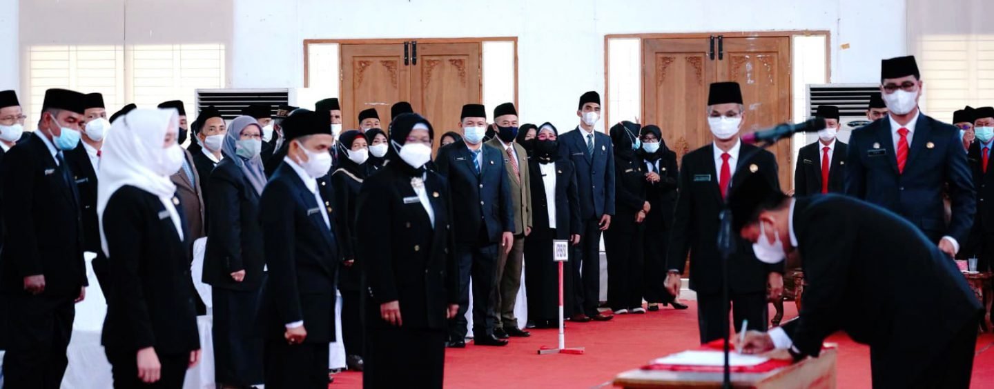 BANYUASIN.KRSumsel.com – Sebanyak 281 orang diambil sumpah jabatan oleh Bupati Banyuasin, H. Askolani, SH., MH digelar di Graha Sedulang Setudung, Senin (27/09/2021).