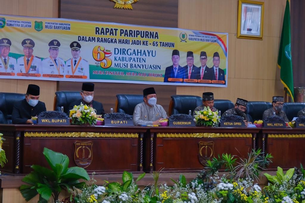 Pembina dan Penggerak Olahraga Terbaik Indonesia ini menuturkan, meski percepatan pembangunan infrastruktur makin masif tetapi dirinya tidak mengenyampingkan program peningkatan kesejahteraan masyarakat. Pada Hari Jadi Kabupaten Muba ke-65 atau tahun ke-4 pelaksanaan tugas sebagai Bupati-Wabup periode 2017 – 2022, dirinya ingin mengingatkan kebijakan pemerintah daerah yang akan ditetapkan pada awal pelaksanaan pemerintahan periode ini, hasil-hasil pelaksanaan pembangunan yang telah dicapai dan masalah yang dihadapi hingga saat ini.