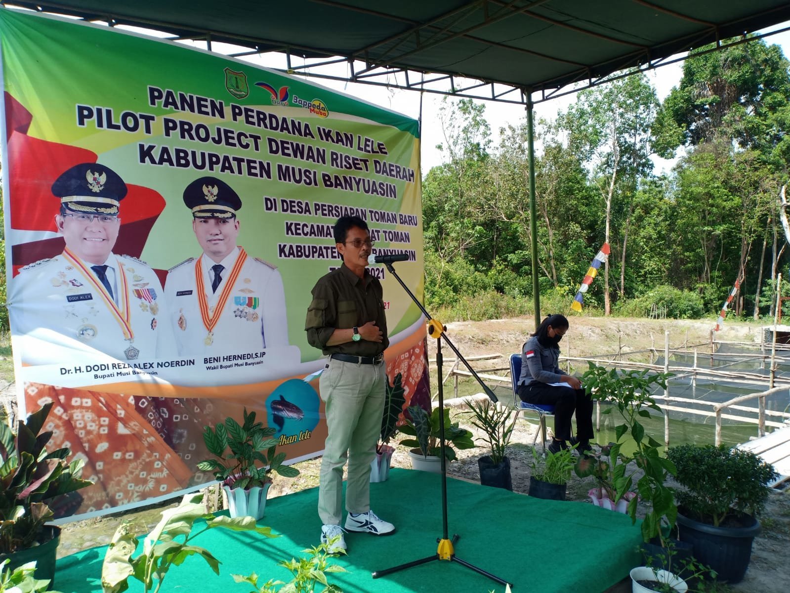 Penen Perdana ikan lele ini merupakan Pilot Project Dewan Riset Daerah (DRD) Kabupaten Musi Banyuasin bekerjasama dengan Bidang Penelitian dan Pengembangan Badan Perencanaan Pembangunan Daerah Muba.