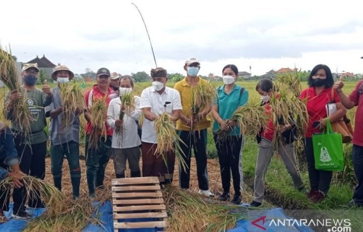 Denpasar, KRsumsel.com – Dinas Pertanian Denpasar, Bali bersama Agro Learning Center (ALC) menginisiasi terwujudnya sistem kawasan pertanian ramah lingkungan dengan melakukan penanaman padi organik, dan kini melakukan panen perdana.