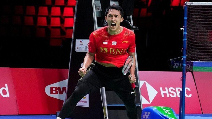Jojo, panggilan akrab Jonatan, jadi pemain ketiga Indonesia pada laga final kontra China di Ceres Arena, Minggu (17/10/2021) malam WIB. Jojo menghadapi Li Shi Feng.