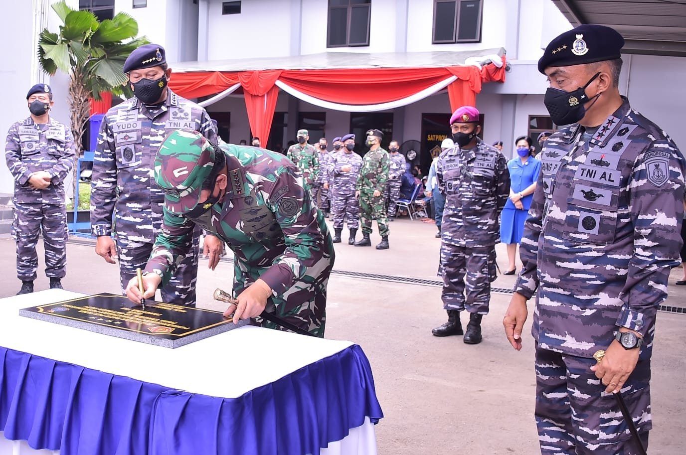 Dalam kesempatan tersebut, Panglima TNI juga menyempatkan diri meletakan batu pertama proses pembangunan gedung kantor sisi timur Mako Pushidrosal.