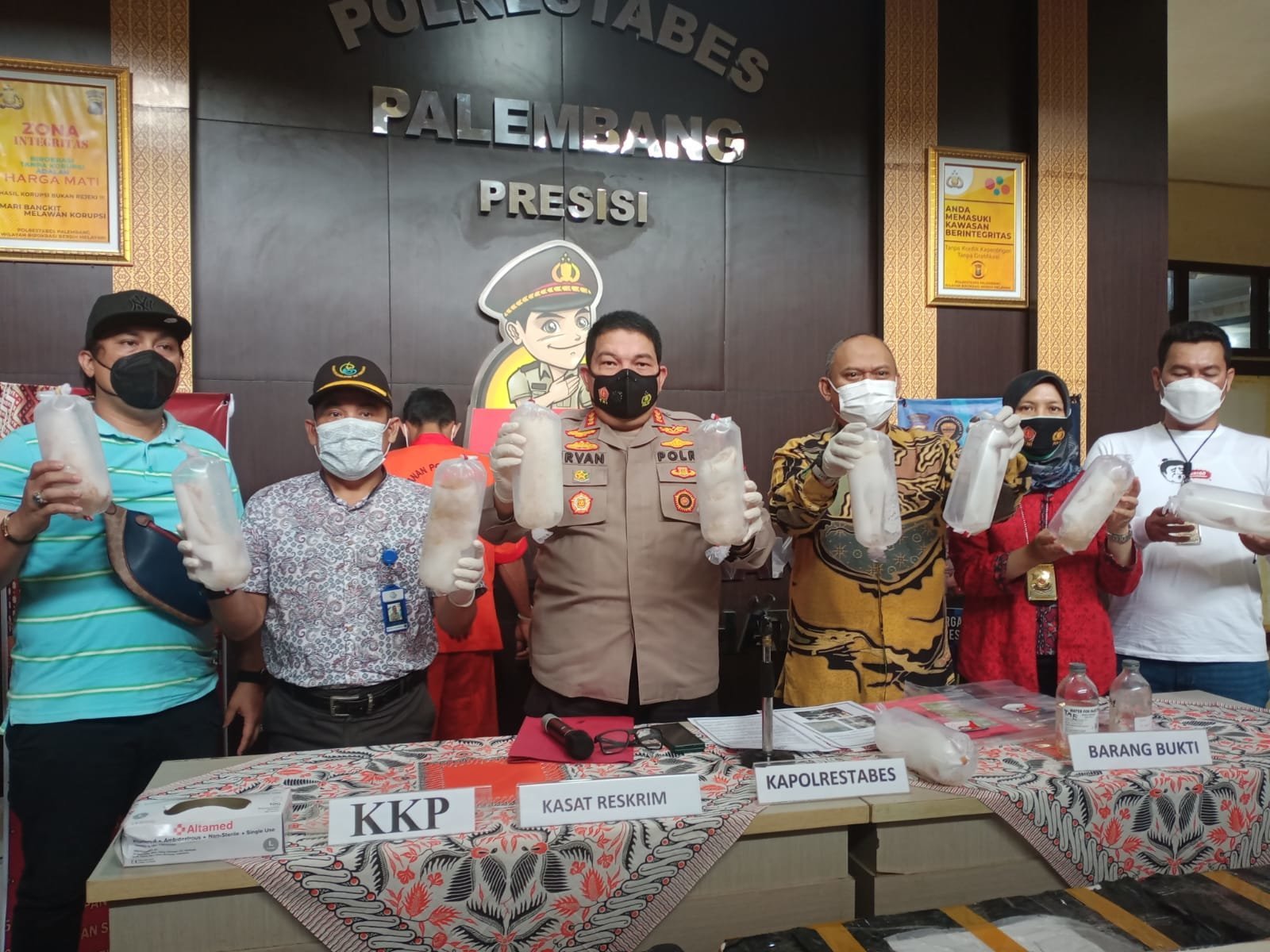 Kapolrestabes Palembang Kombes pol Irvan Prawira Satyia Putra didampingi Kasat Reskrim Kompol Tri Wahyudi, mengatakan penangkapan berawal saat petugas menelusuri penangkapan sebelumnya,alhasil petugas berhasil mengamankan mobil jenis Kijang Innova bernopol BG 1107 B yang membawa bibit udang jenis Mutiara dan Pasir dari Indralaya menuju kota Lubuk Linggau .