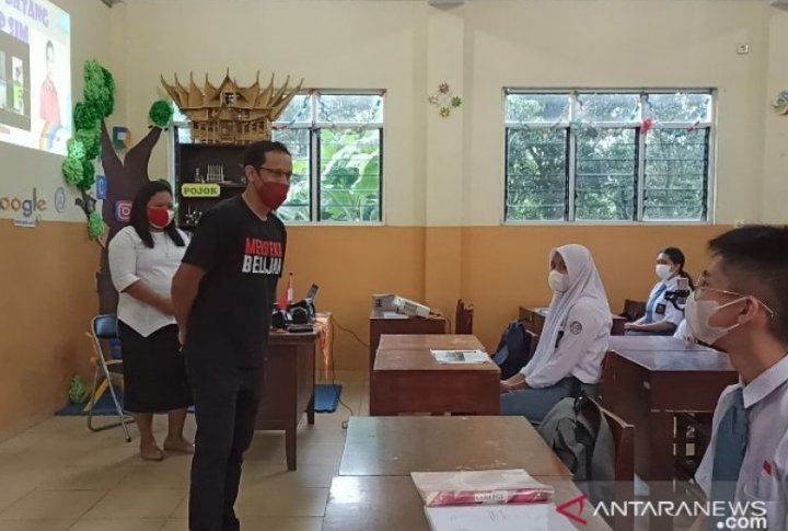 Menurut Nadiem, protokol kesehatan untuk mencegah penularan COVID-19 sudah dijalankan dalam kegiatan belajar mengajar di sekolah itu.