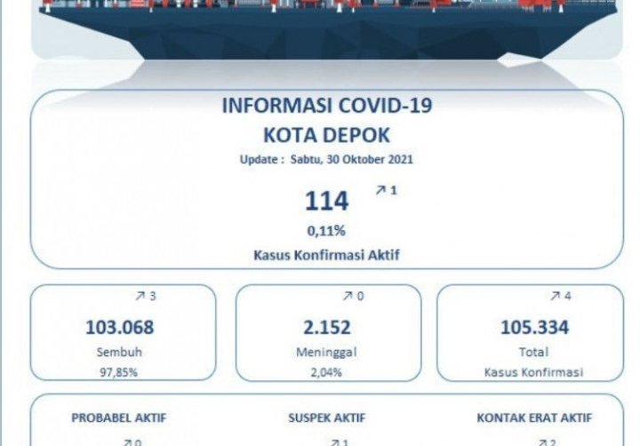 Depok, KRsumsel.com – Data Satuan Tugas Penanganan COVID-19 Kota Depok, Jawa Barat, mencatat penambahan empat kasus konfirmasi positif COVID-19 sehingga total menjadi 105.334 kasus.