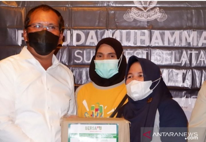 Pimpinan Wilayah Pemuda Muhammadiyah Sulawesi Selatan kembali berbagi paket sembako bagi warga yang terkena dampak pandemi COVID-19 di Kota Makassar, Minggu.