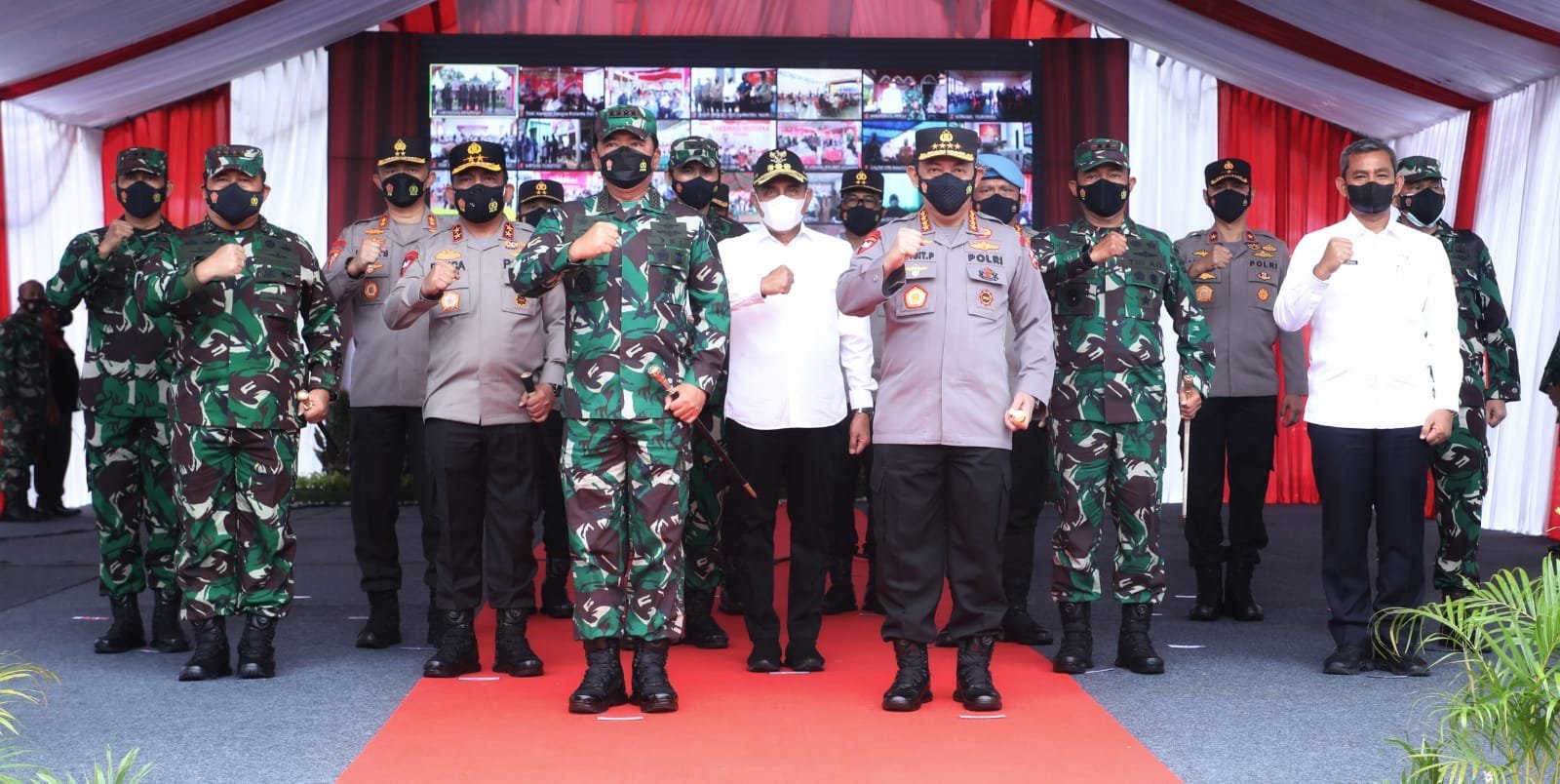 Jakarta, KRsumsel.com – Vaksinasi merupakan salah satu upaya menekan pandemi Covid-19. Saat ini 21 Ibu Kota Provinsi sudah mencapai vaksinasi dosis pertama di atas 70%. Demikian disampaikan Panglima TNI Marsekal TNI Hadi Tjahjanto, S.I.P. didampingi Kapolri Jenderal Pol Drs. Listyo Sigit Prabowo, M.Si., saat memimpin Rapat Evaluasi Penanganan Covid-19 bersama Forkopimda Se-Wilayah Sumatra Utara dan Tinjau Serbuan Vaksinasi di Lapangan Benteng, Medan, Rabu (3/11/2021).
