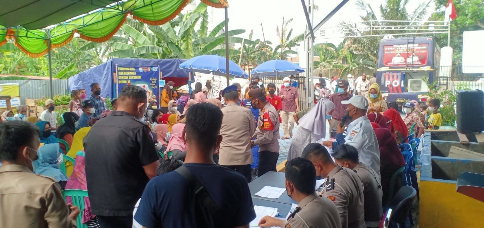 Masyarakat di sekitar wilayah Polsek Kalidoni mendapatkan suntik vaksin secara gratis, ada sekitar 300 dosis vaksin untuk suntik pertama dipersiapkan petugas Urkes dengan menggunakan mobil vaksin keliling.