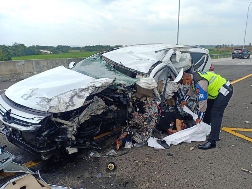 Dari informasi, kecelakaan itu adalah laka tunggal di jalan tol arah Jakarta arah Surabaya tepatnya di KM 672+400A sekitar jam 12.36 WIB.