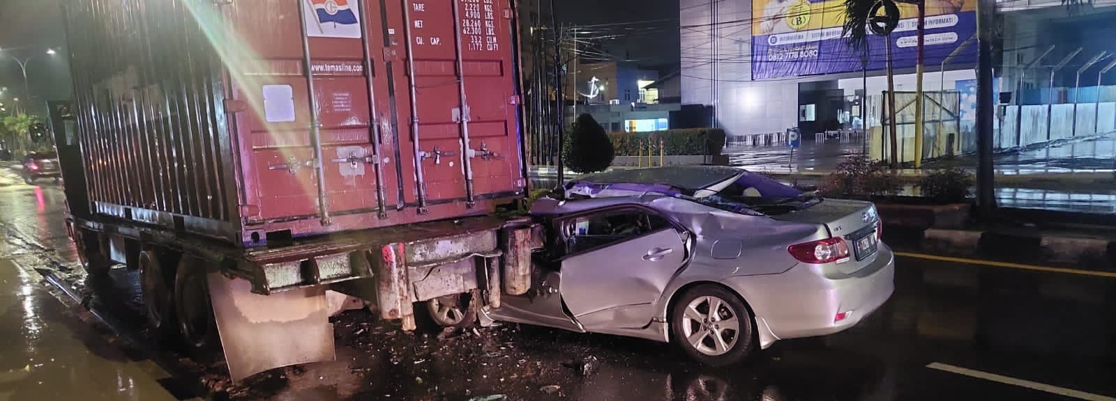 PALEMBANG,KRSumsel.com – Diduga mengantuk sebuah mobil Toyota Altis menabrak mobil kontiner yang parkir akibat pecah ban belakang hingga mengakibatkan mobil masuk ke bawah bak mobil kontiner di Jalan Basuki Rahmat, tepatnya depan rumah dokter Win, Kecamatan Kemuning Palembang, Jumat (5/11/2021) sekitar pukul 02.00 WIB.
