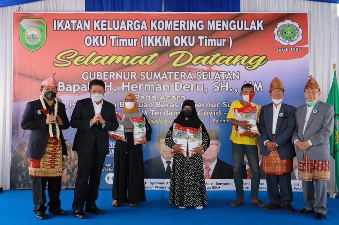 PALEMBANG, KRsumsel.com – Silaturahmi Gubernur Sumatera Selatan (Sumsel) H. Herman Deru dengan masyarakat komering yang tergabung dalam Ikatan Keluarga Komering Mengulak (IKKM) Kabupaten OKU Timur disambut warga dengan sukacita terlebih kehadiran sang gubernur dekat dengan rakyat ini membawa bantuan beras 3,5 ton diperuntukan anggota IKKM.