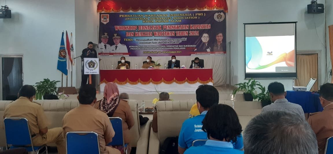 PAGARALAM, KRSUMSEL.com- Walikota Pagaralam Alpian Maskoni yang hadir serta membuka Langsung Kegiatan Worshop Jurnalistik Peningkatan Kapasitas dan Kualitas wartawan tahun 2021 dengan mengusung tema “mewujudkan wartawan yang memiliki wawasan luas dan berkarakter.